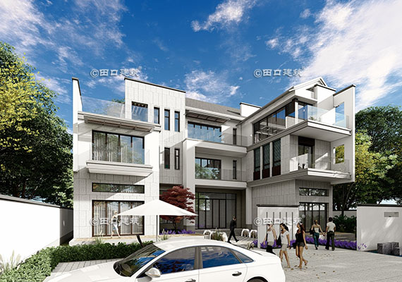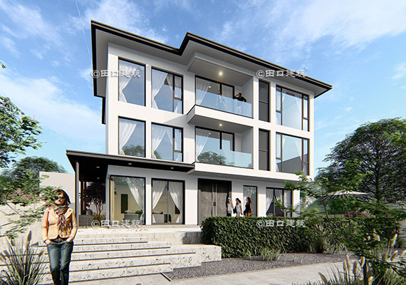 占地面積 288.4㎡ 土建造價 120.0萬 白色現代別墅